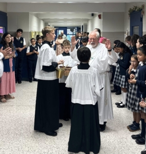 Catholic students in the third grade and up are invited to go through a short initial training to become altar servers during school and weekend masses.